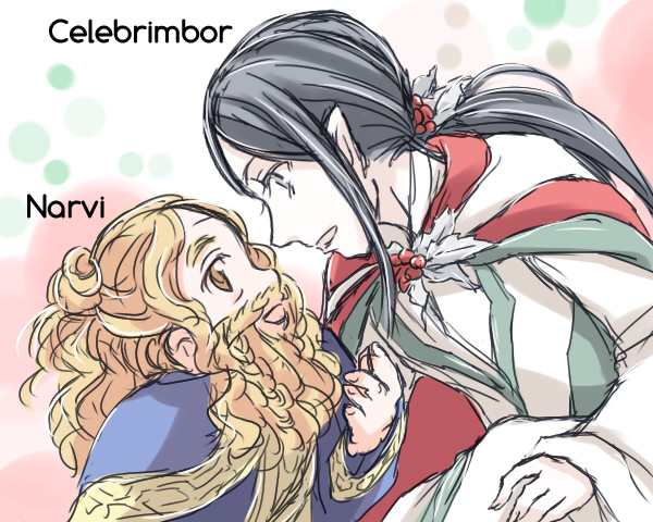 微妙に礼装っぽいケレブリンボールとナルヴィです。この二人でクリスマスっぽい落書きは結構よく描いているのですが、楽しいのでつい描いてしまいます。そのうちきちんとした絵も描けたらいいですねー。