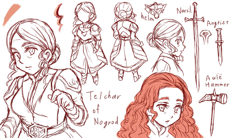 テルハールに関しては、"Firebeard"の一言でイメージが固まりました(いやノグロドのドワーフが炎髭族とは限らないのですが)。ドワーフ最大の名工が、アウレに最も愛されたエルフであるマハタンと同じく紅い髪の持ち主だとしっくりいくと。運命的なものを感じますね!!
