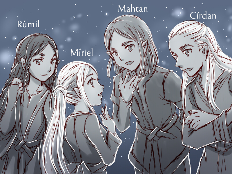 ルーミル、ミーリエル、マハタン、キアダン。西へ行く前の中つ国時代。星々の時代のエルフ達。