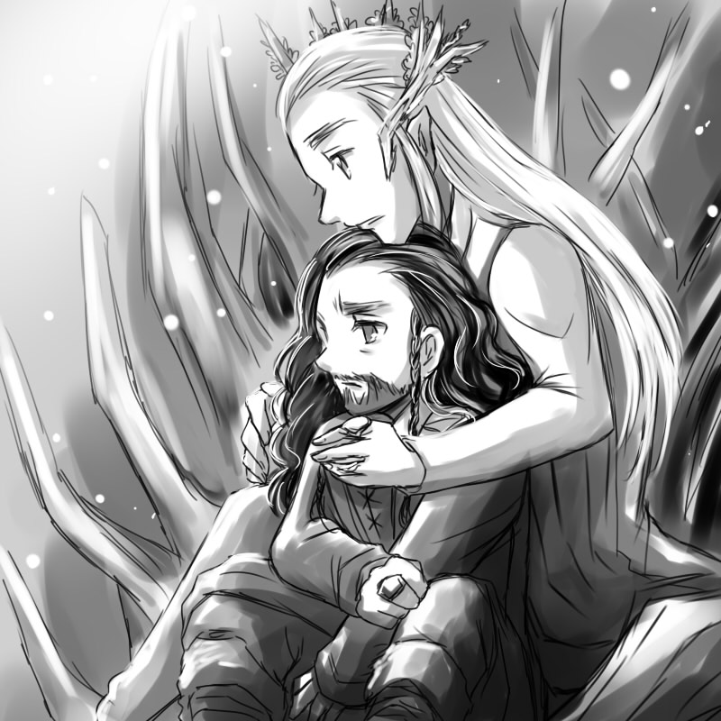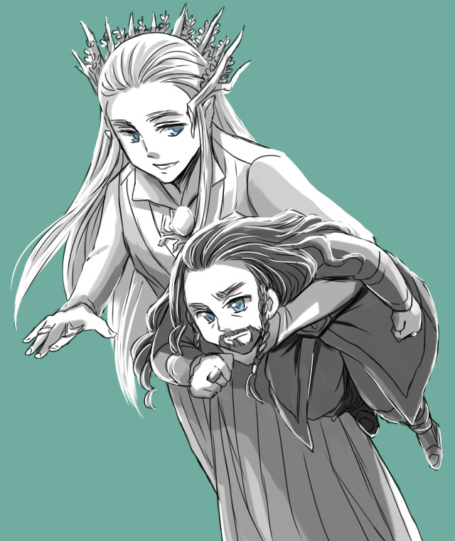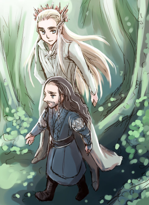 スランドゥイルとトーリンが一緒に歩く時、スランドゥイルはさりげなくトーリンに歩幅を合わせて歩いていたらいいなぁという妄想による落書きです。