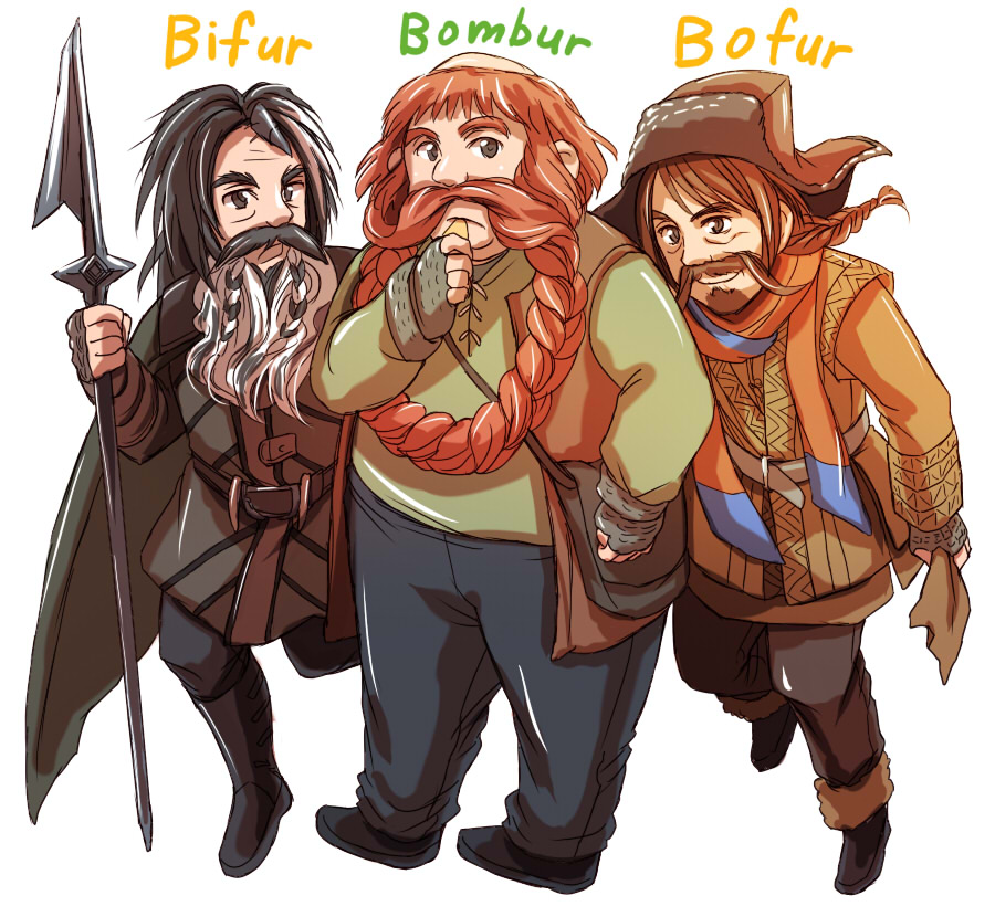 ドゥリンの家系ではない庶民ドワーフ達という事で、王族の多いこの作品では却って目立っているように思えます。ビフール、ボフール、ボンブール。響きが楽しいです。
