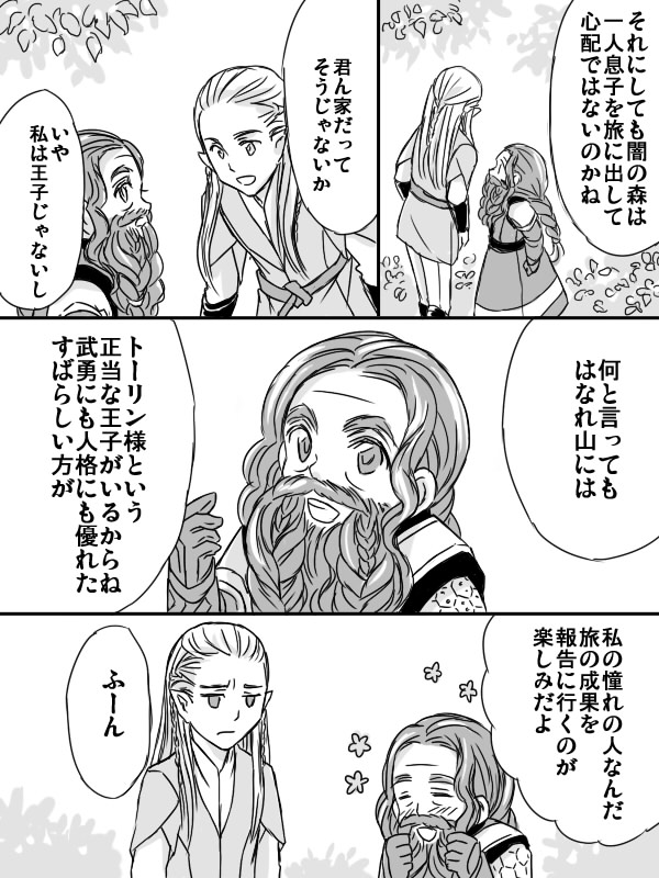トーリン三世に憧れるギムリと、それに嫉妬するレゴラスの構図もえ。