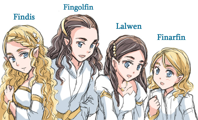 インディスの子供達。フィンディス、フィンゴルフィン、ラルウェン、フィナルフィン。