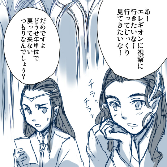 ギル=ガラド→ケレブリンボール前提で。エレギオンに行きたいギル=ガラドと、上司に突っ込むエルロンド。
