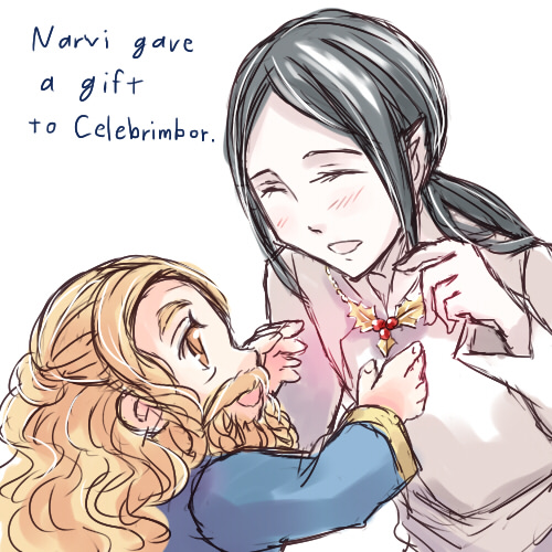 微妙に礼装っぽいケレブリンボールとナルヴィです。この二人でクリスマスっぽい落書きは結構よく描いているのですが、楽しいのでつい描いてしまいます。そのうちきちんとした絵も描けたらいいですねー。