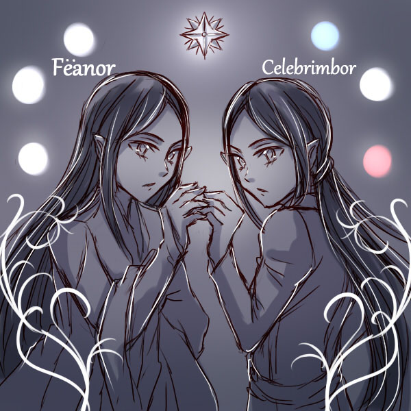 トールキン深夜のワンドロ。テーマ『フリー』で描いた、フェアノールとケレブリンボール。